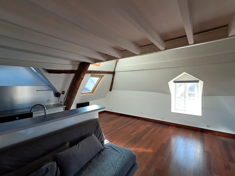 Profitez d'un cadre de vie exceptionnel dans cet appartement T1 bis situé au dernier étage d'un immeuble, offrant une vue imprenable sur le port du Croisic.