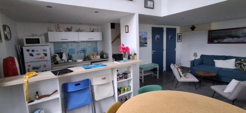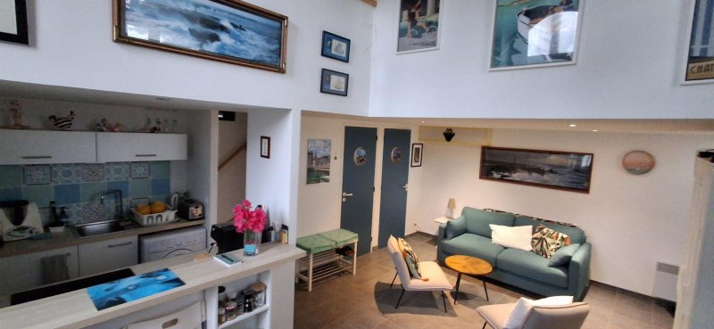Idéalement situé dans une résidence avec piscine à deux pas de l'eau, découvrez ce superbe duplex lumineux. Le rez-de-chaussée s'ouvre sur une pièce de vie aux volumes généreux avec une belle hauteur sous plafond, incluant une cuisine équipée .