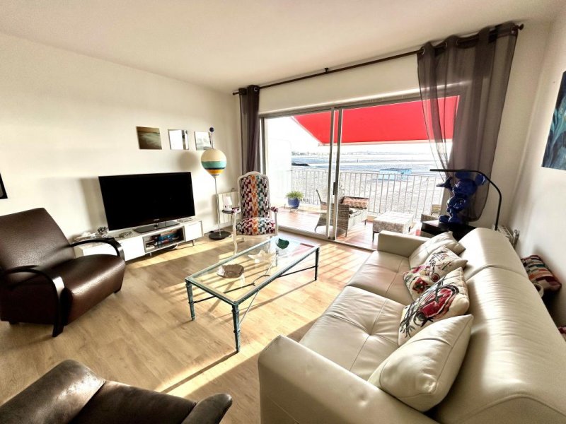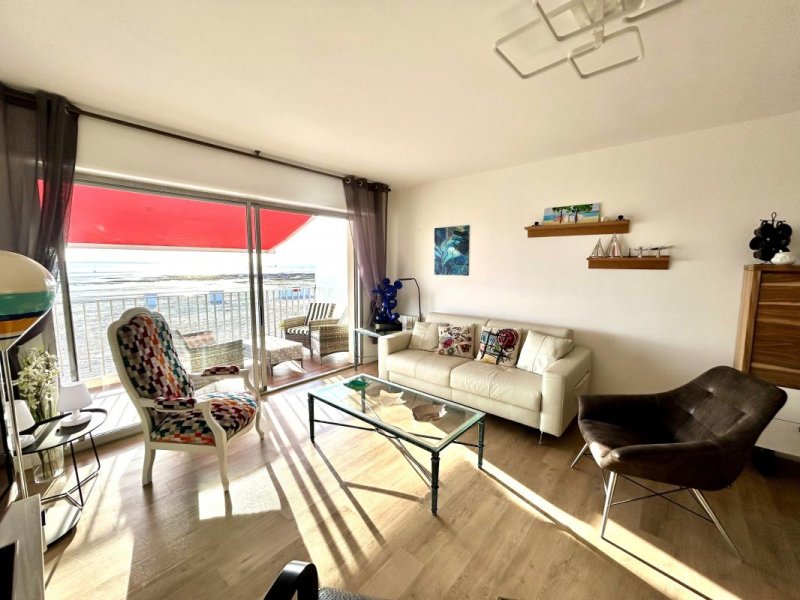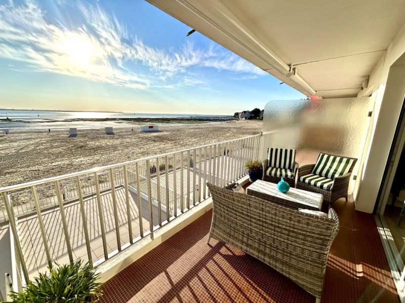 Emplacement d'exception face mer, plage du Nau avec vue sur la pointe de Penchateau, à deux pas du port, des commerces et du petit bois, appartement traversant et très ensoleillé, d'une surface habitable de 72,48 m² offrant un beau séjour sur terrasse vue plage pour profiter du panorama, cuisine aménagée et quipée, 2 chambres sur balcon ouest, salle de bains et W.C. indépendants. nombreux placards penderies.