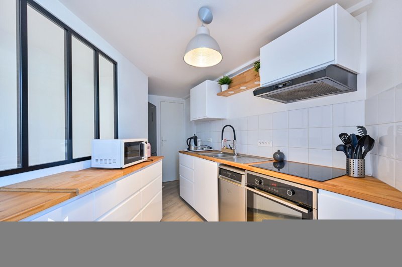 Idéalement situé à proximité des commerces, du port, de la gare et de la plage, cet appartement rénové allie confort et praticité.