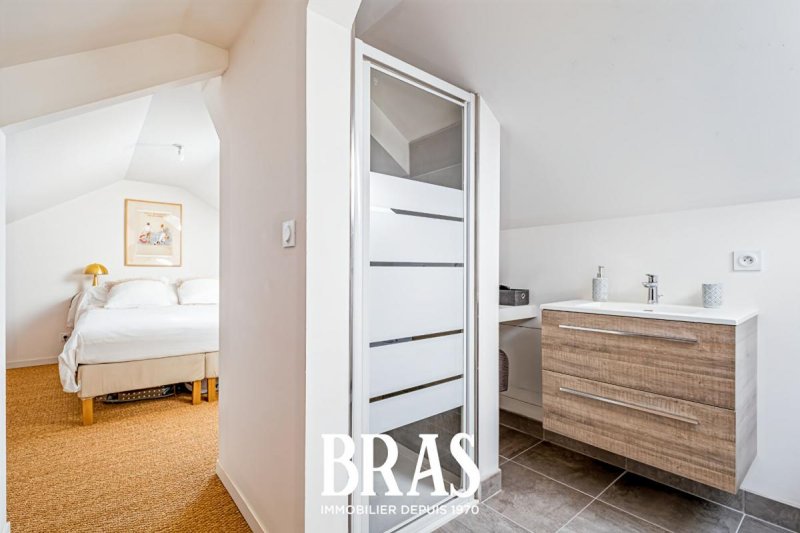 A proximité du marché, votre agence bras immobilier vous propose au 2ème et dernier étage d'une petite copropriété un magnifique appartement entièrement rénové comprenant une vie de plain pied avec une entrée, un salon/séjour lumineux avec parquet ancien, une cuisine entièrement aménagée et équipée, deux chambres, une salle d'eau et un wc. A l'étage, vous trouverez une suite parentale avec salle d'eau, wc et dressing.
