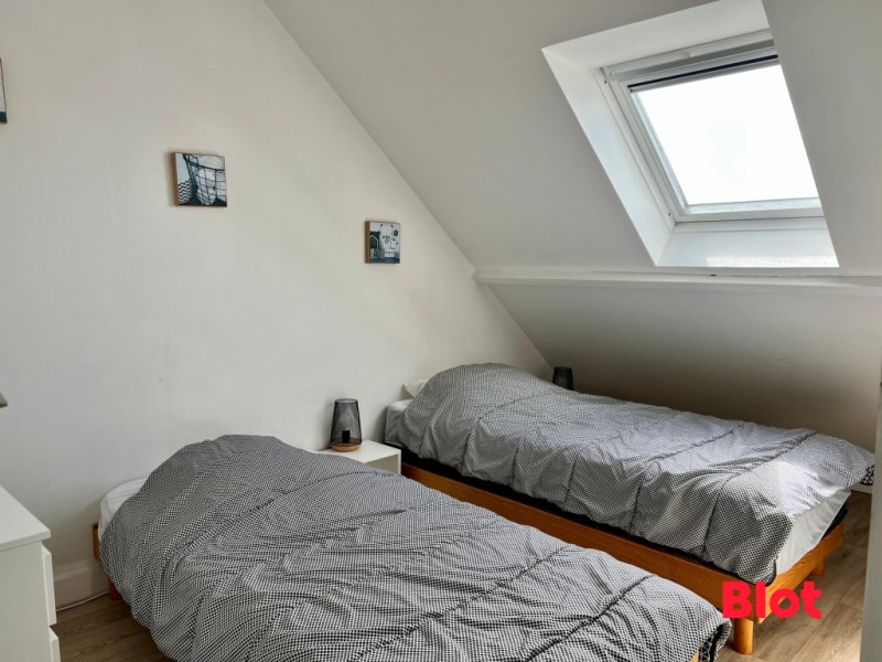 Votre Agence BLOT vous propose à deux pas de la côte sauvage, ce magnifique duplex au 1er et dernier étage de 60m² au sol, 45,7m² en loi Carrez.