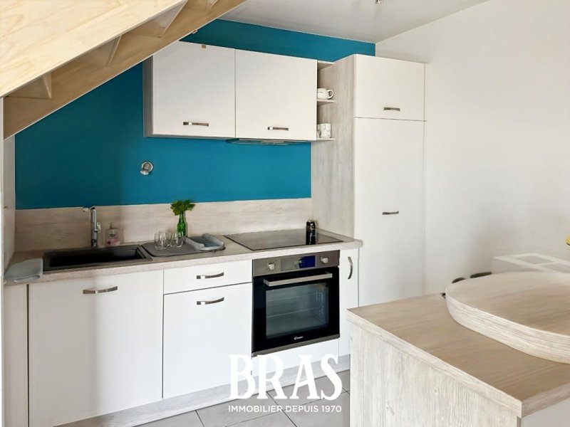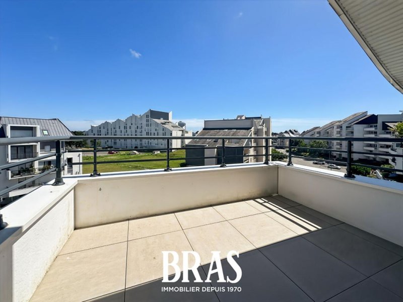 Le Pouliguen proche centre, au dernier étage d'une résidence récente un appartement en duplex comprenant au rez-de-chaussée: une entrée, un salon/séjour donnant sur une terrasse, une cuisine aménagée et équipée, un dégagement desservant une chambre, une salle de bains et un wc.