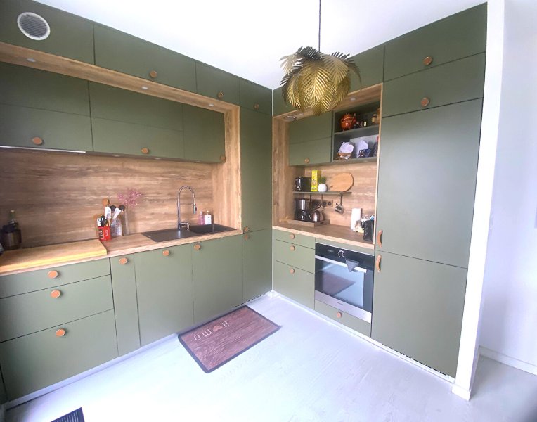 La cuisine récente, entièrement aménagée et équipée, s'intègre parfaitement à l'espace de vie.