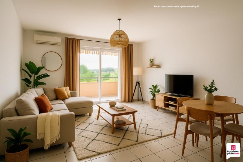 Lescar (64230) Appartement T2; 46,28m2 environ; 1 chambre, 1 grande pièce de vie, 1 salle d'eau avec WC, 1 belle terrasse de plus de 12m2 environ; 1 place de de parking.