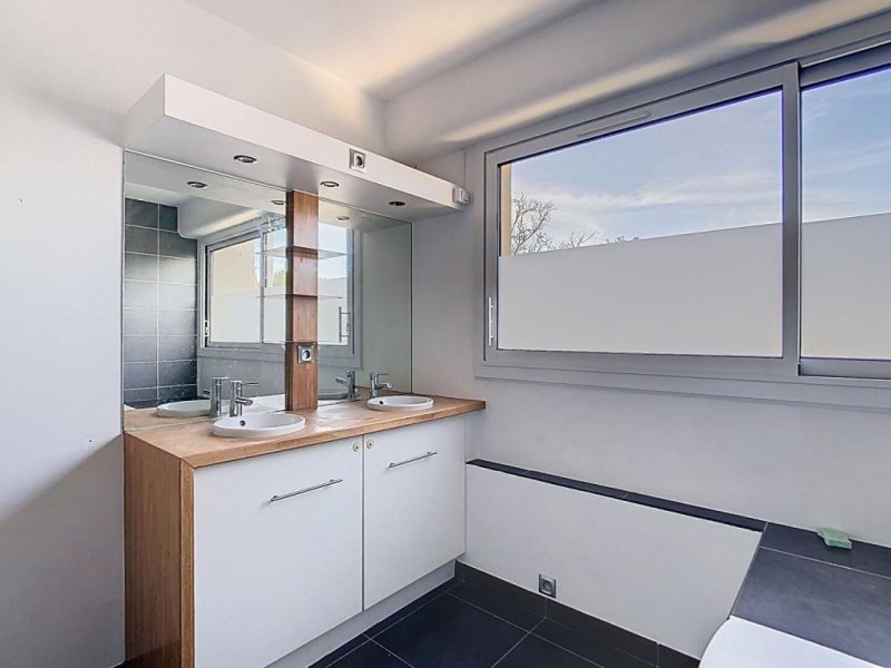 Technique : fenêtres en aluminium KLINE changées en 2020 avec volets électriques, poêle à pellets installé en 2020 pour plus de confort et pour une ambiance plus chaleureuse, toiture refaite + VMC changée en 2022.