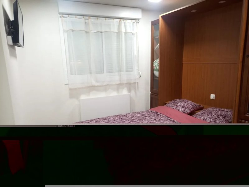L'appartement a été entièrement refait à neuf récemment. Il est composé d'une pièce de vie avec lit escamotable pour deux personnes, rangements, coin cuisine aménagé/équipé (plaque de cuisson induction, hotte aspirante, machine à laver le linge, réfrigérateur, micro-ondes gril). La salle d'eau est dotée d'une fenêtre.