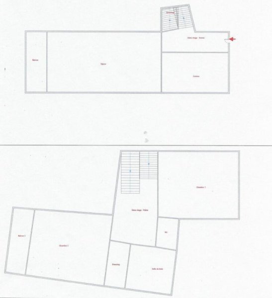 Au 1er niveau : entrée, dégagement avec placards, cuisine équipée ouverte sur séjour donnant accès à un balcon de 30 m². Possibilité d'ouvrir totalement le rez-de-chaussée pour créer un bel espace de vie.