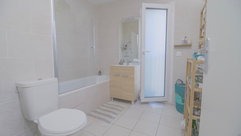 Côté nuit : trois chambres confortables, une salle d'eau, une salle de bain avec grande fenêtre (rare dans le neuf), WC séparé et nombreux rangements.