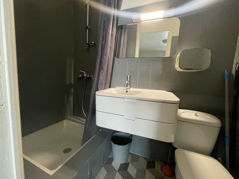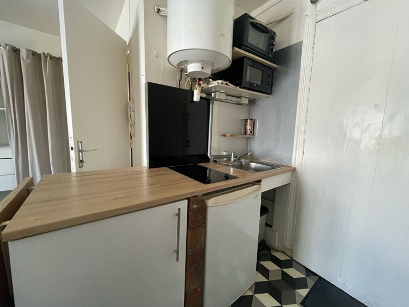au 4ème et dernier étage d'un immeuble de 1900. Ce bien, idéal pour les investisseurs ou pour un premier achat, offre une pièce de vie lumineuse exposée ouest avec coin kitchenette, ainsi qu'une salle d'eau moderne avec WC.