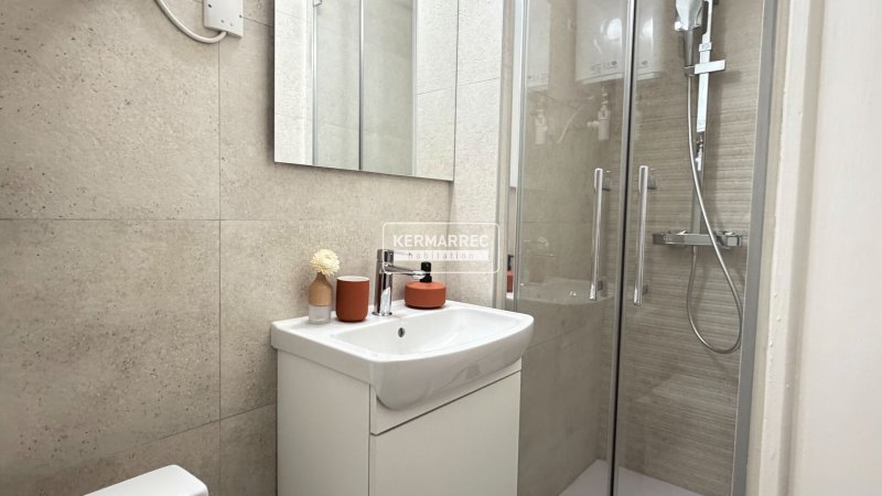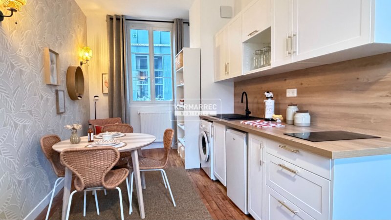 L'appartement se compose d'une entrée, donnant sur une pièce de vie de 17m² agrémentée d'une cuisine parfaitement aménagée et équipée ainsi que d'une salle d'eau fonctionnelle avec WC.