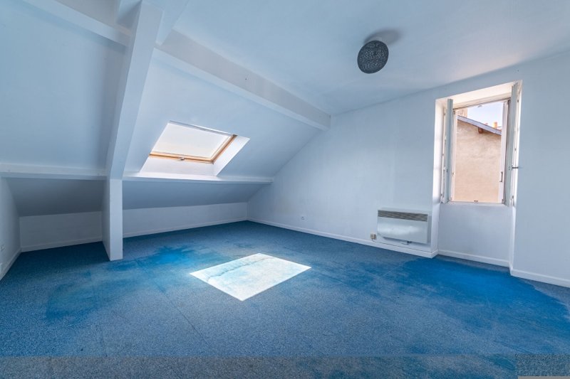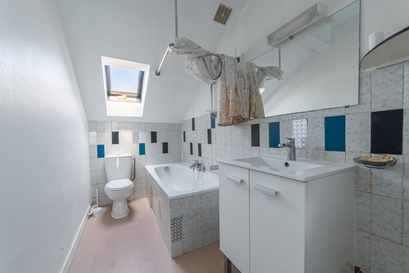 Vaste pièce de vie, cuisine aménagée, salle de bains avec WC.