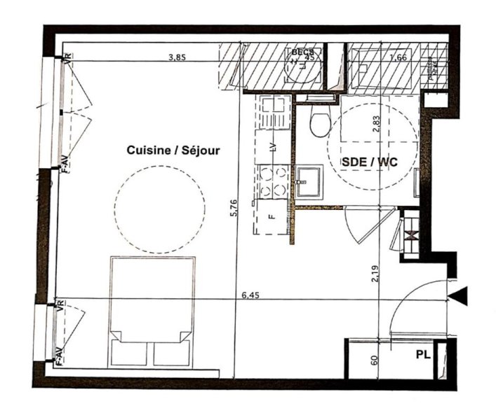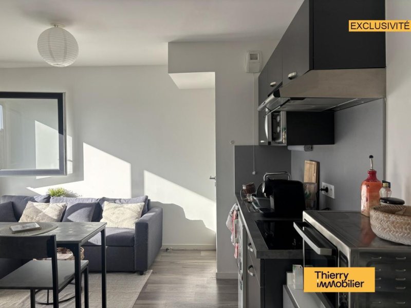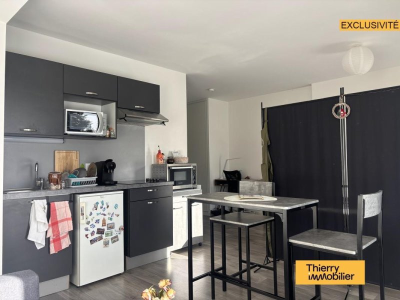 NANTES, QUARTIER JONELIERE, dans une résidence neuve un studio comprenant : Une entrée avec placard, une pièce de vie avec possibilité de coin nuit, une cuisine ouverte aménagée et équipée, une salle d'eau avec wc. Parking couvert.