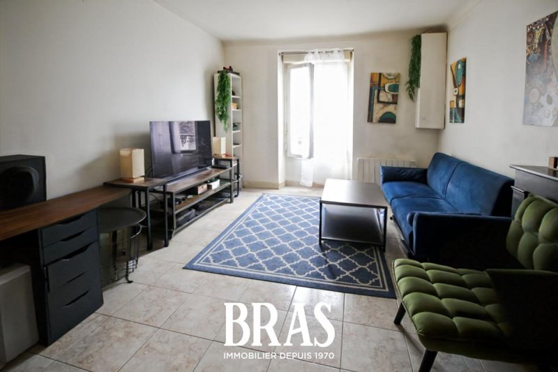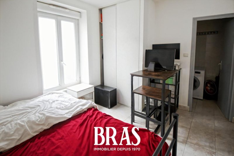 Appartement de type 2 au 1er étage d'un immeuble ancien, composé d'un salon, d'une cuisine aménagée, d'une chambre avec salle d'eau attenante et un wc.