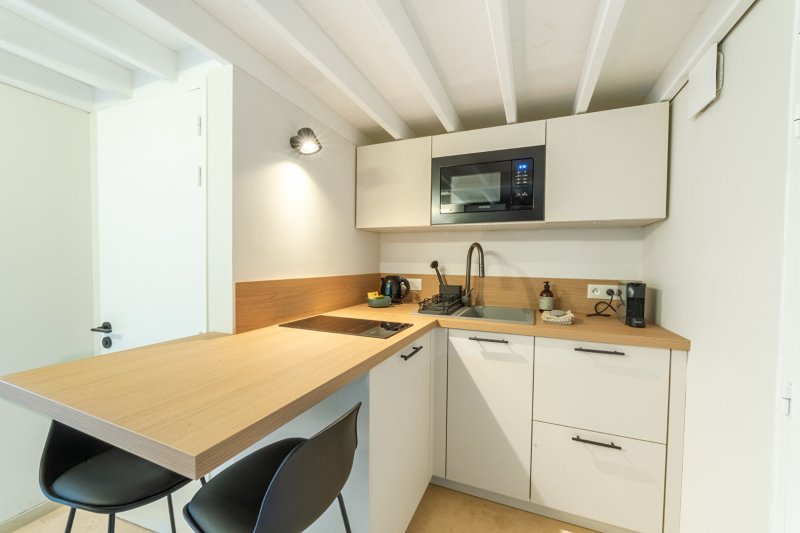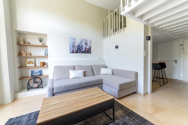 Cet appartement de prestige de type 2 vous offre réception, cuisine équipée, chambre en mezzanine, salle d'eau, WC. Un local à vélos complète ce bien de qualité inondé de soleil.