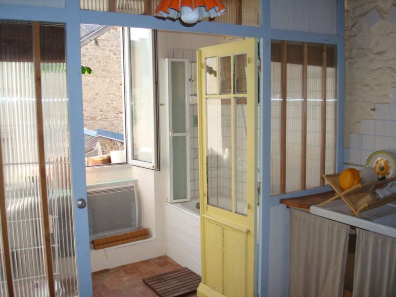 DALBY Beau T2 dans l'ancien, rénové, poutres, tomettes, pierres apparentes, parquet, salon et chambre séparée, lumineux, cabanon, au calme.