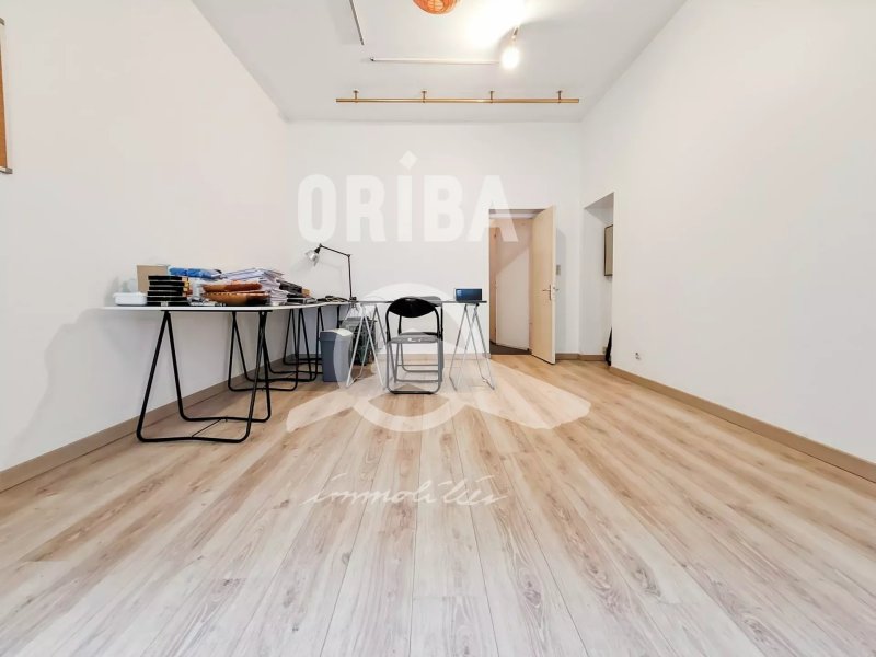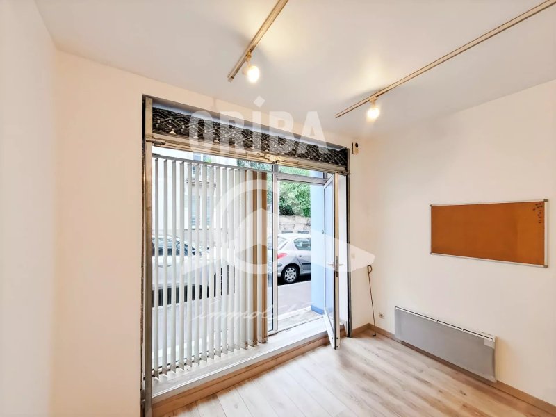 Cet espace d'une surface de 30m2 sur rue avec vitrine, se compose aujourd'hui de 2 grandes pièces en enfilade, d'un wc, d'une cabine de douche et d'une kitchenette.