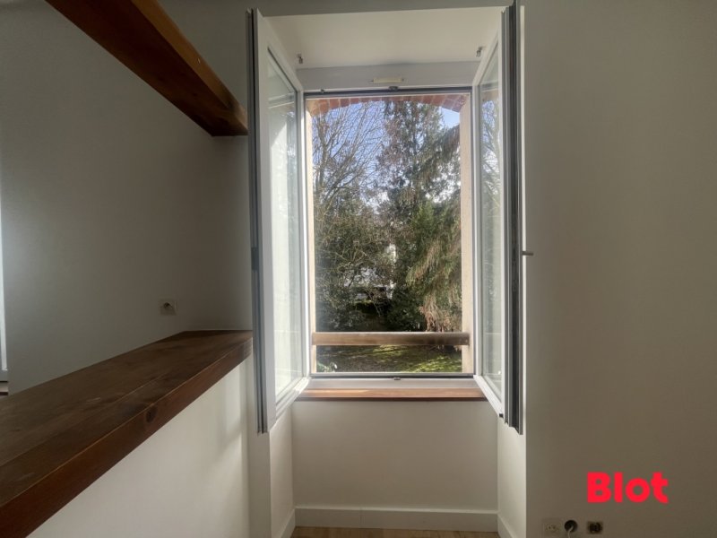 Situé au 1er étage, cet appartement T2, bourré de charmes, comprend une entrée, séjour avec cuisine ouverte de 32,74 m², une chambre de 15 m², salle de bains et WC.