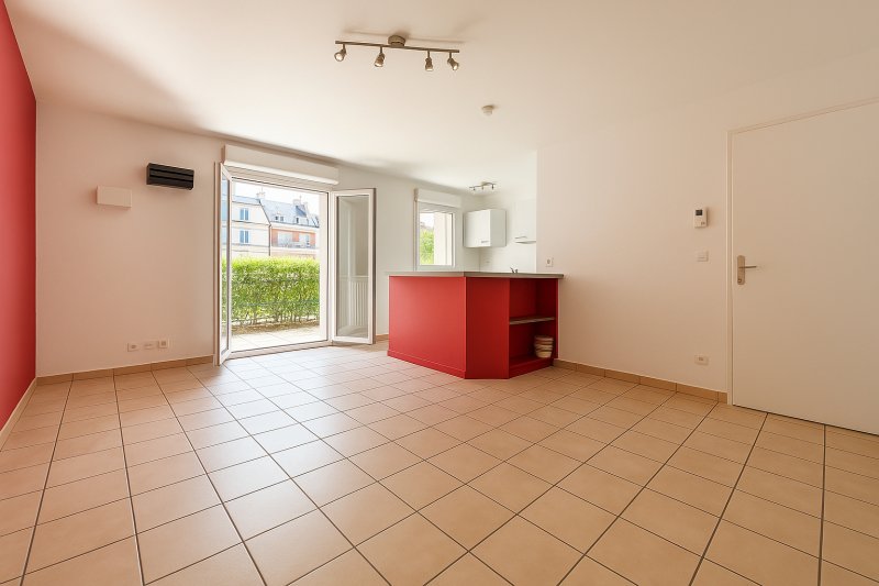 Appartement Type 2 idéalement situé, au calme en impasse, entrée desservant le salon avec cuisine semi-ouverte donnant sur la terrasse.
