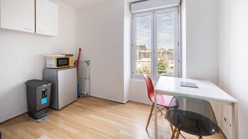 Nantes - Dalby : Au coeur du quartier vivant de Dalby, apprécié pour sa proximité immédiate des transports, de la gare, des commerces, écoles et espaces verts, bel appartement aux prestations soignées. Niché au 3ème étage d'une petite copropriété, il offre une entrée, une pièce de vie exposée ouest, une cuisine aménagée et équipée, une salle de bains avec WC.
