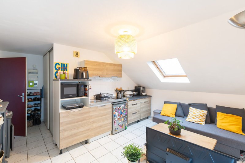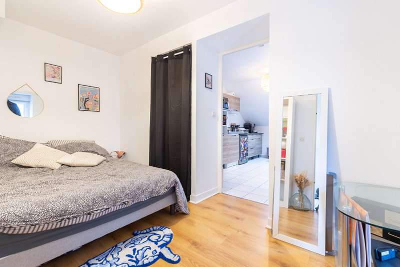 Parfaitement agencé et en parfait état , ce bien d'une surface d'environ 31 m2 au sol ( 24 m2 carrez ) se compose d'une pièce principale très fonctionnelle avec cuisine américaine aménagée ainsi que d'une chambre séparée avec salle de douche attenante .