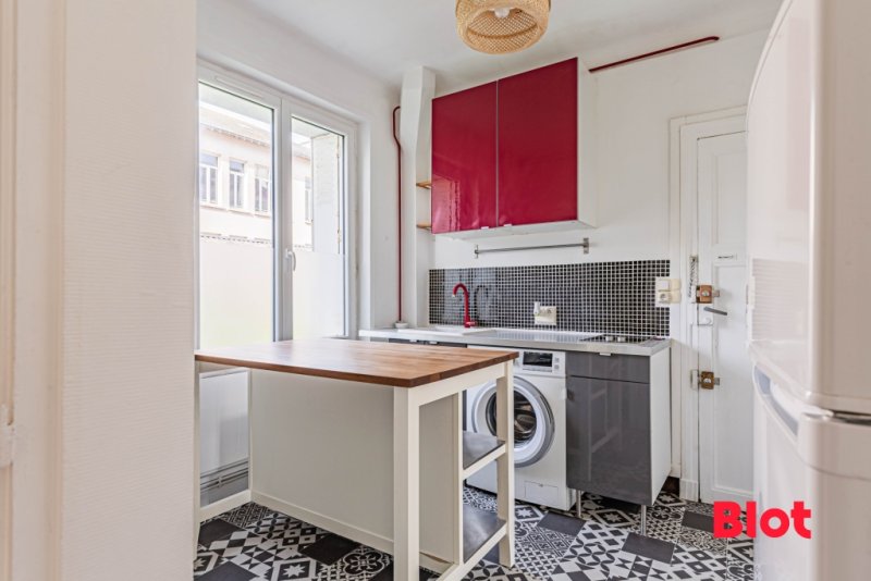En RDC d'un immeuble des années 50, vous y retrouverez une cuisine aménagée donnant côté jardin de copropriété, une salle d'eau avec WC, une chambre et un salon attenant, les deux dernières pièces donnant sur l'impasse !