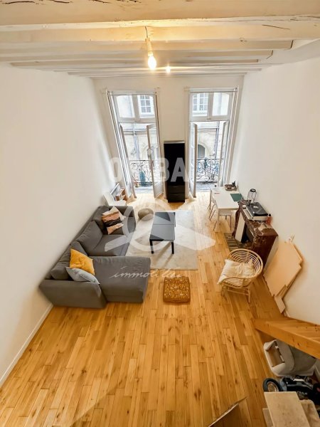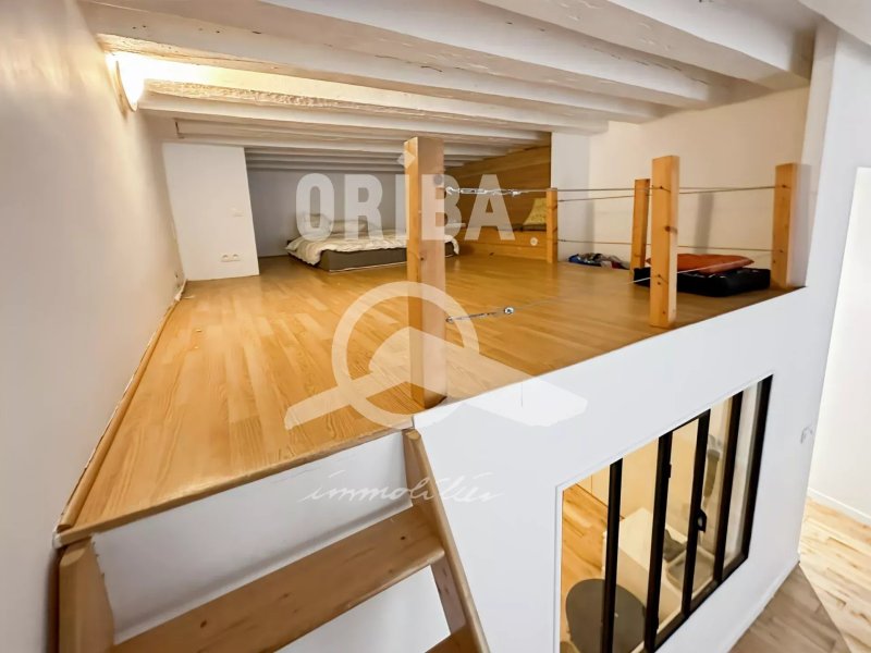 Il se compose d'une entrée avec couloir, qui distribue une cuisine aménagée et équipée, une chambre avec placards, une salle d'eau, un wc, un salon-séjour avec cheminée, ainsi qu'une grande mezzanine faisant office de bureau ou de coin nuit.