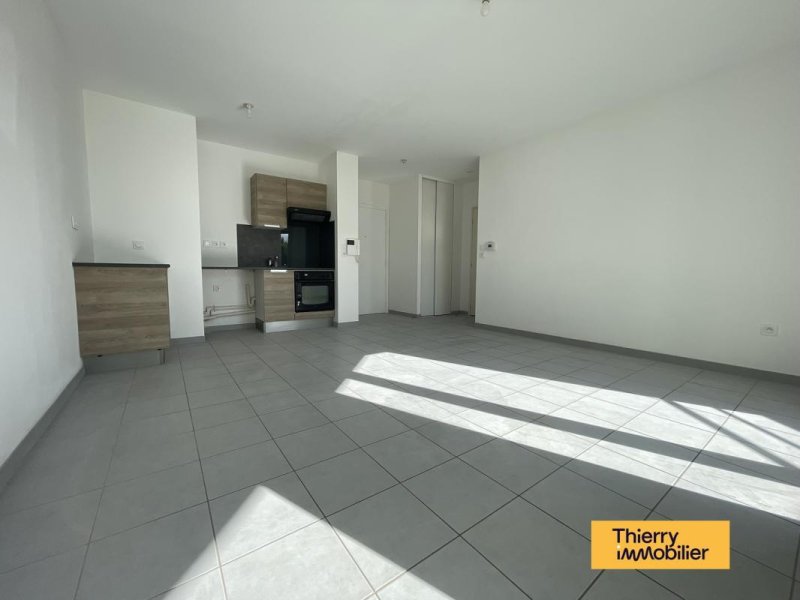 ROUTE DE VANNES, dans une résidence récente BBC, un appartement Type 2 comprenant : Une entrée avec placard, un séjour donnant sur un balcon, une cuisine ouverte aménagée et équipée , une chambre, une salle d'eau avec wc. Parking Couvert.