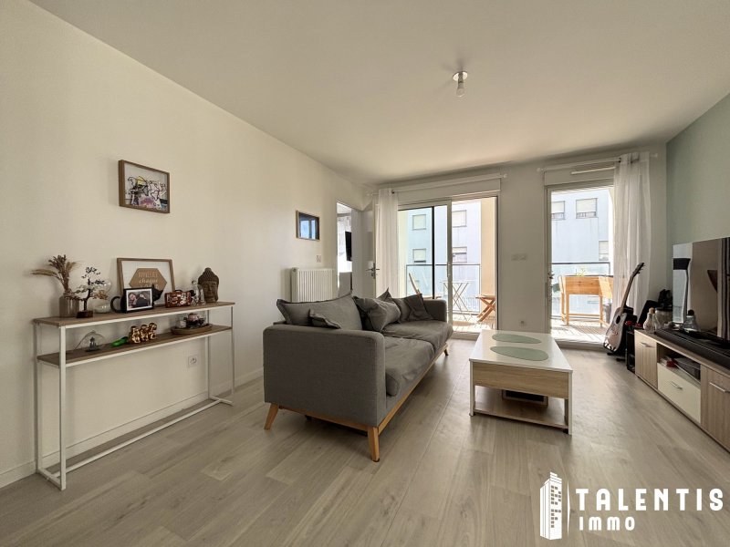NANTES, EURONANTES / GARE SUD Appartement 3 Pièces (61m² 2ch) Lumineux Loggia Excellent état Idéalement situé au pied de la gare de Nantes, découvrez ce superbe 3 pièces, parfaitement agencé, au 2ème étage d'une copropriété récente et de standing (2018). L'immeuble, très bien entretenu, dispose d'un ascenseur, d'un interphone, de la fibre optique et d'un local à vélo. L'appartement propose des prestations soignées et un agencement optimisé. Il se compose comme suit : - Une entrée avec placard, - Un séjour avec une double exposition, accès direct à la loggia, - Une cuisine ouverte, aménagée et équipée (four, plaques, hotte), - Deux chambres (9.25m² et 12.43 m²), dont une avec placard, - Une salle de bains, - Un WC indépendant. Annexes : - Un local vélo. A savoir : - Chauffage / Eau chaude : Collectif - Taxes foncières : NC - Exposition : Ouest - Charges : 123/mois - Accès PMR. Les atouts : - Copropriété récent en parfait état et offrant un DPE en B, - Lumineux, avec une double exposition dans le séjour, - Calme, donnant sur une rue piétonne arborée, - Une loggia de 6m². Transports à proximité : - Bus : Lignes C2, C3, 54 (Arrêt Berlin) - Tramway : Ligne 1 (Arrêt Gare Nord) - Train : Gare TGV-TER-Intercité-Corail Un bien offrant un beau potentiel rare au coeur d'un quartier recherché. À visiter sans tarder ! Honoraires inclus de 4.26% TTC à la charge de l'acquéreur. Prix hors honoraires 235 000 . Dans une copropriété de 44 lots. Aucune procédure n'est en cours. Classe énergie B, Classe climat A Montant estimé des dépenses annuelles d'énergie pour un usage standard : entre 430.00 et 630.00 sur les années 2021, 2022 et 2023 (abonnements compris). Les informations sur les risques auxquels ce bien est exposé sont disponibles sur le site Géorisques : georisques.gouv.fr. . Talentis, l'immobilier sur mesure.