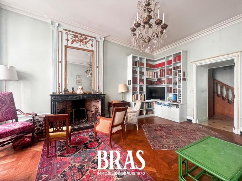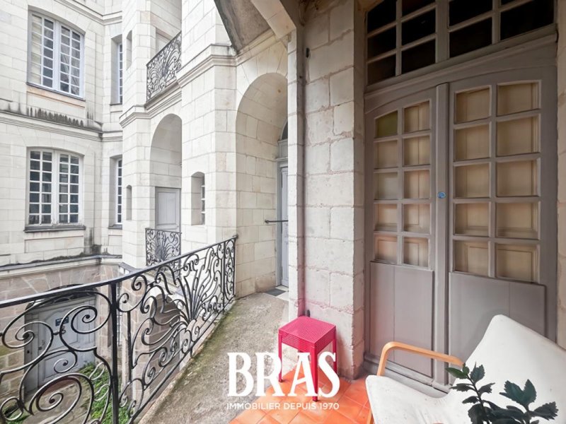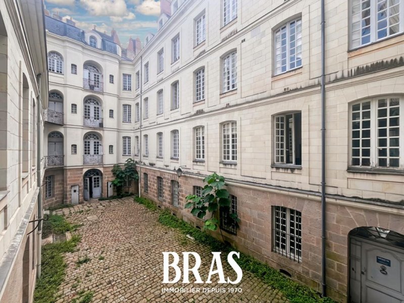 En hypercentre de Nantes, vaste et bel appartement traversant en duplex au 1er et 2ème étage d'un immeuble de caractère dont les façades et la cage d'escalier sont classées Monuments Historiques. Au premier étage, le logement se compose d'une belle entrée, d'un salon (parquet et cheminée en marbre du 18ème siècle), d'une cuisine séparée et aménagée et d'un WC. Au second étage, par un escalier, deux grandes chambres sur tommettes avec placard, un dégagement, une salle de bains (baignoire, double meuble vasque, douche, emplacement pour machine à laver et WC) et un accès au grenier (8m2).
