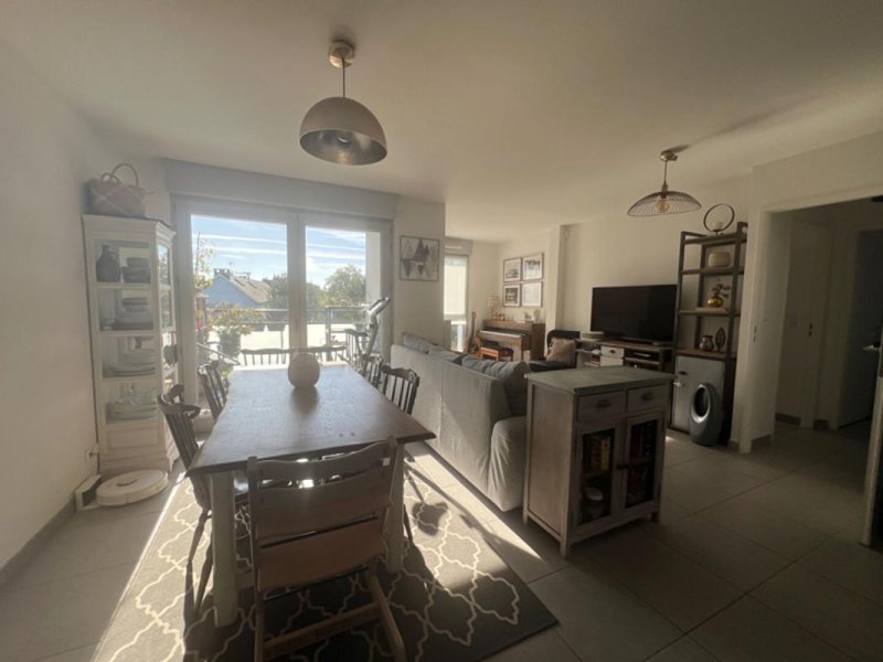 NOUVEAU - Route de Rennes - T3 récent de 2019 situé dans une résidence avec ASCENSEUR, offrant : une entrée avec placard, une pièce de vie de 30,29 m2 sur BALCON exposée S-E avec cuisine ouverte, un dégagement nuit desservant 2 CHAMBRES de 13,17 m2 et et 10,28 m2 avec placards et une salle d'eau douche à l'italienne. PARKING sécurisé en sous-sol.
