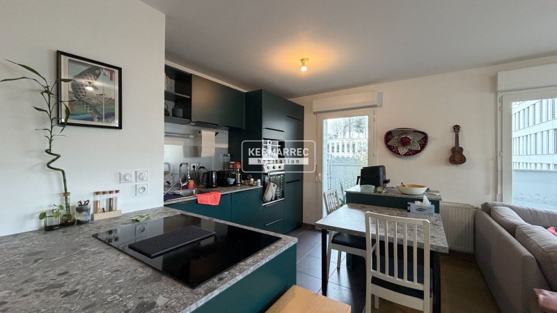 L'appartement se compose d'un séjour orienté Nord-Est avec cuisine aménagée et équipée et accès à la terrasse. Le coin nuit comprend deux chambres ainsi qu'une salle de bains et WC indépendants.