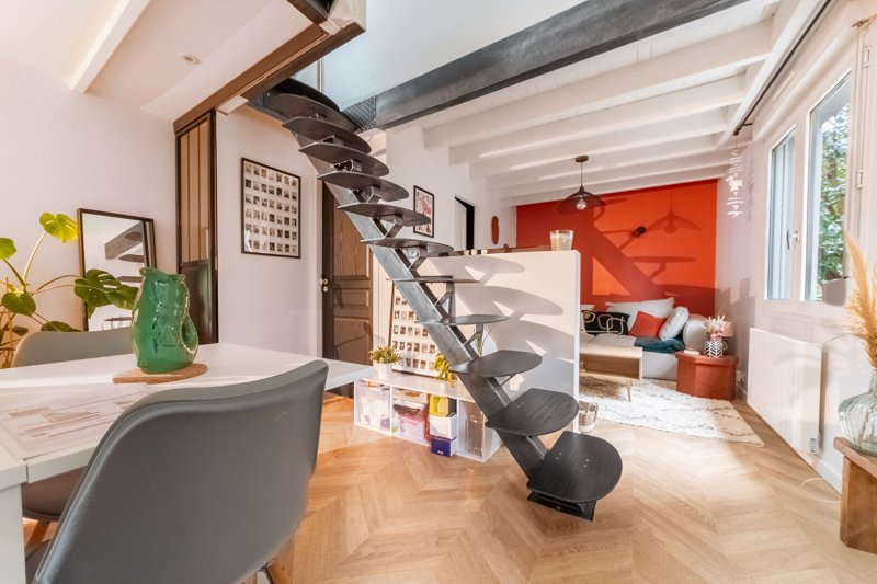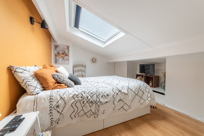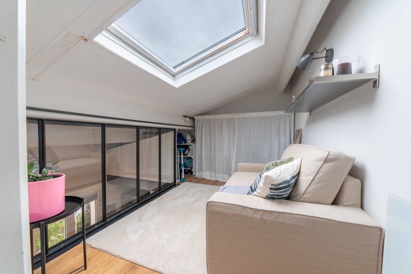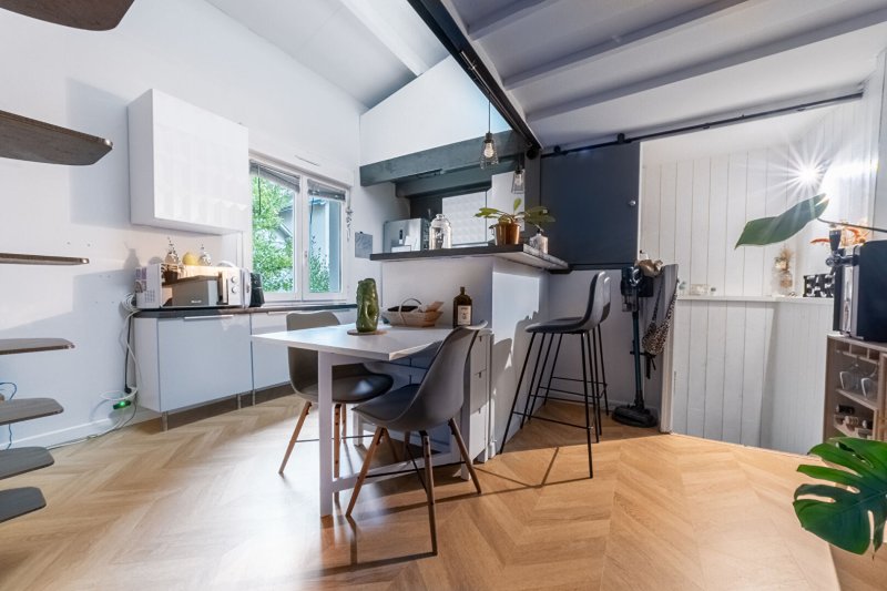 À l'étage supérieur, une mezzanine et une chambre complètent ce bien fonctionnel.