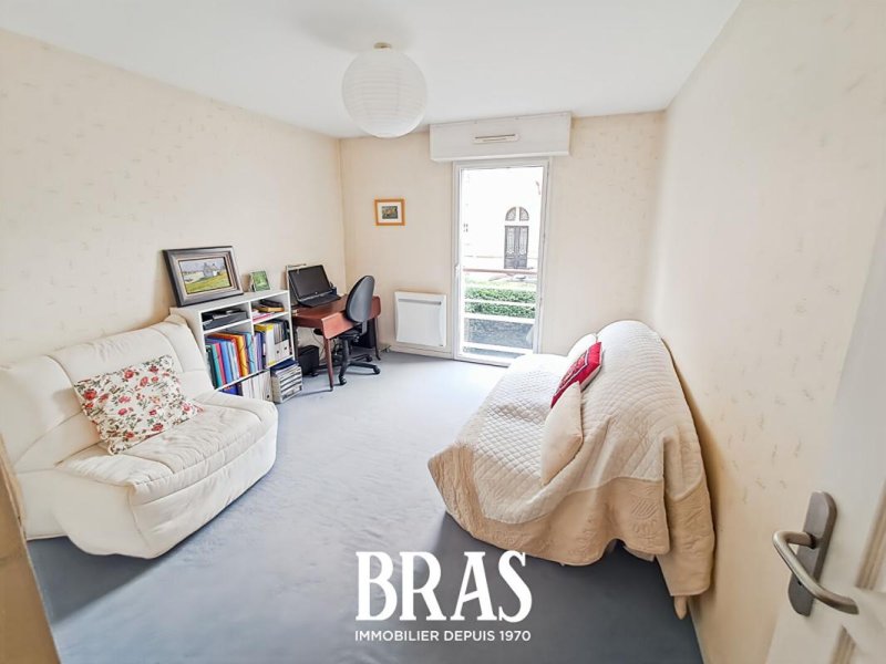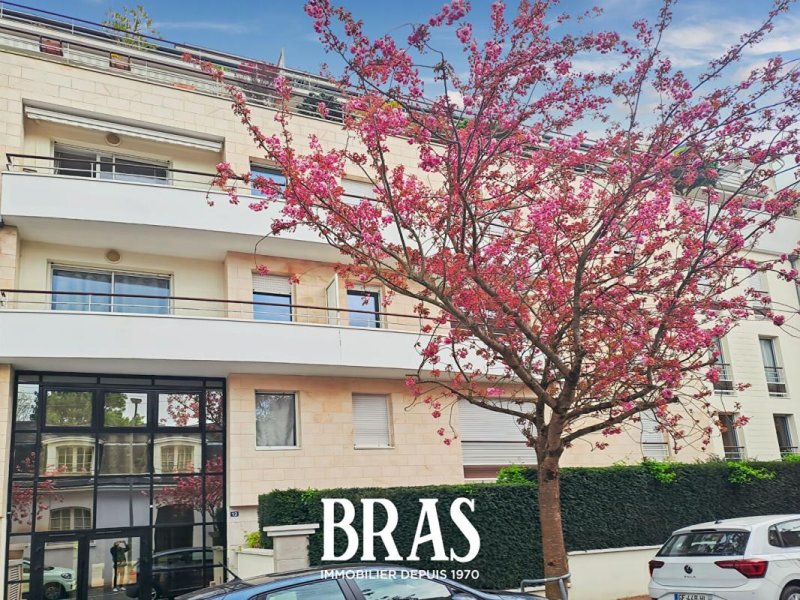 Dans un bel immeuble de standing avec ascenseur, appartement de type 3 avec une terrasse de 8m² tourné sur le jardin arboré.