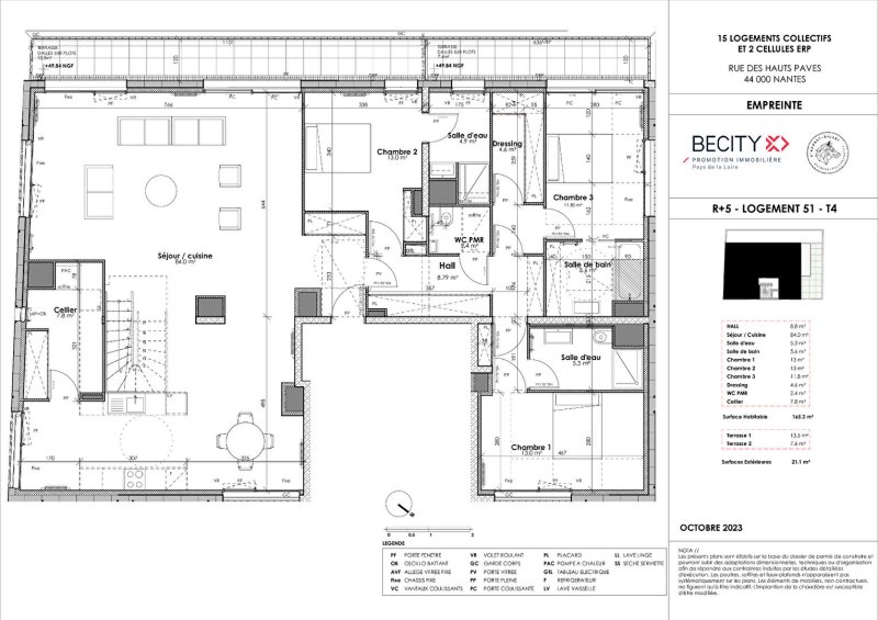 D'une superficie de 105 m² à 165m² ces appartements sont conçus pour répondre à vos besoins en matière de confort et de fonctionnalité. Ils comprennent trois chambres spacieuses, idéale pour vous ressourcer.