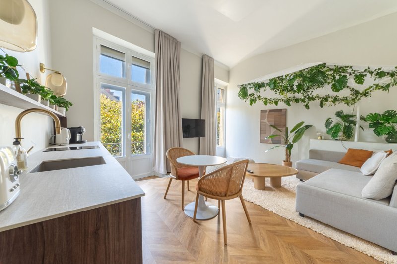 Nantes - Centre-ville : idéalement situé au coeur du centre historique de Nantes, aux pieds du tram et des commerces et à 5 minutes à pieds de la gare, ce bien rénové aux prestations haut de gamme est niché au 2ème étage avec ascenseur d'un immeuble d'armateur rénové.