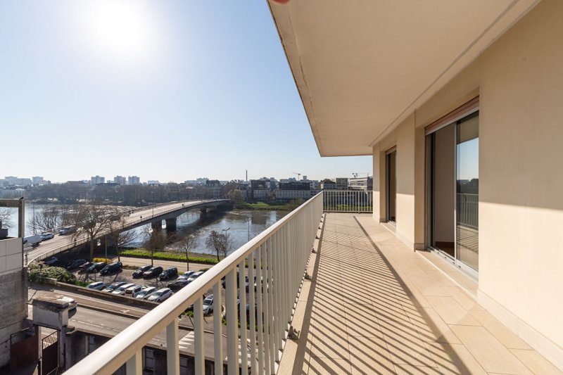 A vendre, au 5ème étage avec ascenseur avec vue imprenable sur la Loire et sa terrasse de 38 M² qui entoure ce grand appartement de 109 M² ,, vous offre une entrée spacieuse, un séjour, exposé Sud/Ouest, une salle à manger, une cuisine, une salle de bains, un WC, 3 chambres dont une avec salle d'eau privative, et une terrasse exposée sud donnant sur la Loire. CAVE et PARKING. Chauffage et eau chaude collectifs au gaz.