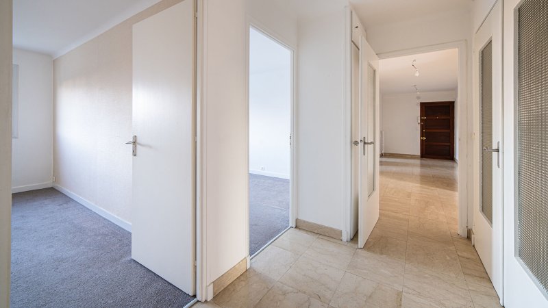 Ce bien de qualité, baigné de soleil, fonctionnel et en excellent état se compose d'une immense entrée avec placard, double réception sur parquet donnant sur balcon-terrasse sud-ouest, cuisine aménagée, arrière cuisine, dégagement avec placards, 3 grandes chambres, salle de bains, et WC.