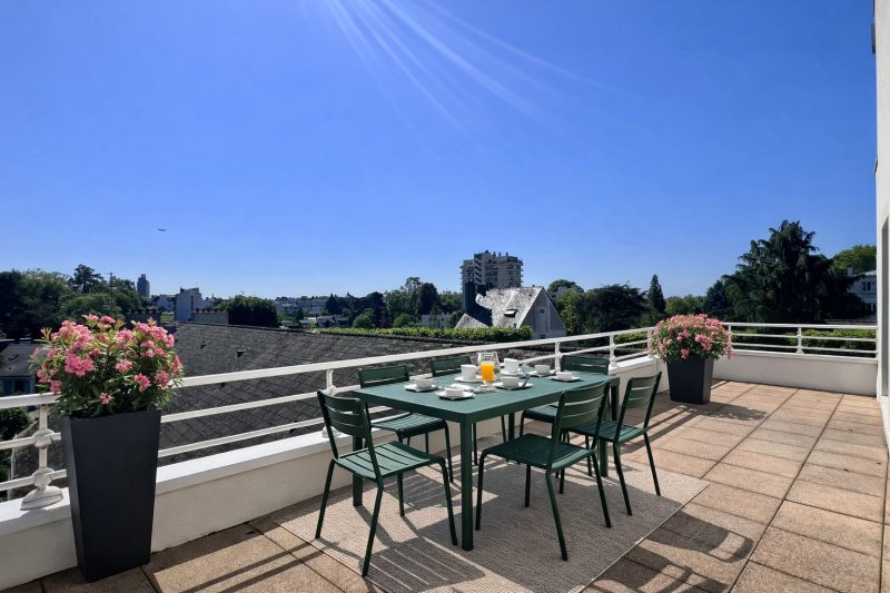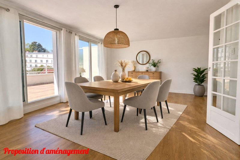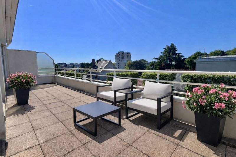Nantes Quartier ProcéAu dernier étage d'une résidence de standing, cet appartement en duplex séduit immédiatement par sa luminosité, ses terrasses et ses vues dégagées. Développant 114 m² habitables (122 m² au sol), il offre un espace de réception de 42 m², baigné de lumière, ouvert sur deux terrasses idéalement exposées Est et Sud. La cuisine, contemporaine et indépendante, permet des repas au quotidien tout en bénéficiant d'un accès direct à l'extérieur. À l'étage, l'espace nuit propose trois chambres, toutes prolongées par une terrasse, ainsi qu'un bureau. Une salle d'eau avec espace lingerie et une salle de bains viennent compléter cet ensemble fonctionnel et familial. En annexe, une cave et un double box en enfilade. Honoraires inclus de 3.28% TTC à la charge de l'acquéreur. Prix hors honoraires 580 000 . Dans une copropriété de 3 lots. Aucune procédure n'est en cours. Classe énergie D, Classe climat D Montant estimé des dépenses annuelles d'énergie pour un usage standard : entre 1670.00 et 2310.00 sur les années 2021, 2022 et 2023 (abonnements compris). Les informations sur les risques auxquels ce bien est exposé sont disponibles sur le site Géorisques : georisques.gouv.fr.