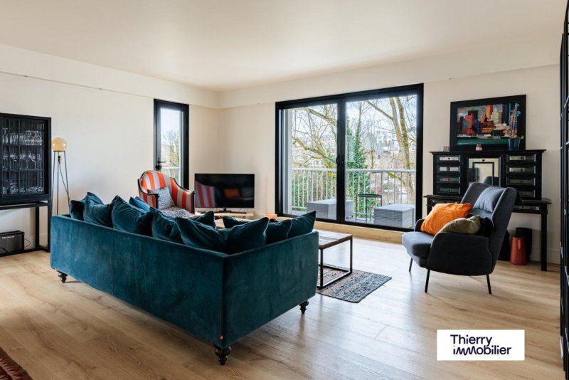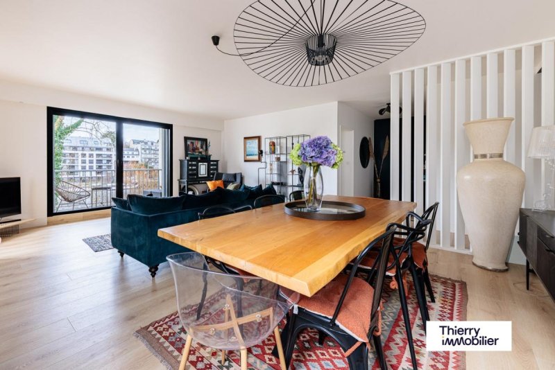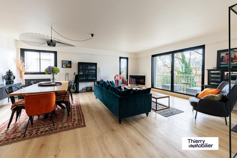 Situé dans un cadre privilégié, cet appartement T5 d'exception de 115m² a bénéficié d'une rénovation complète avec des prestations haut de gamme. En étage d'une résidence avec ascenseur, ce bien se distingue par sa vue panoramique imprenable sur l'Erdre. La pièce de vie, un vaste double séjour de près de 40 m² exposé Sud et Ouest, s'ouvre sur une terrasse de 14 m² surplombant la rivière. Une cuisine indépendante aménagée et équipée, complétée par une buanderie et un balcon, parfait l'espace de réception.