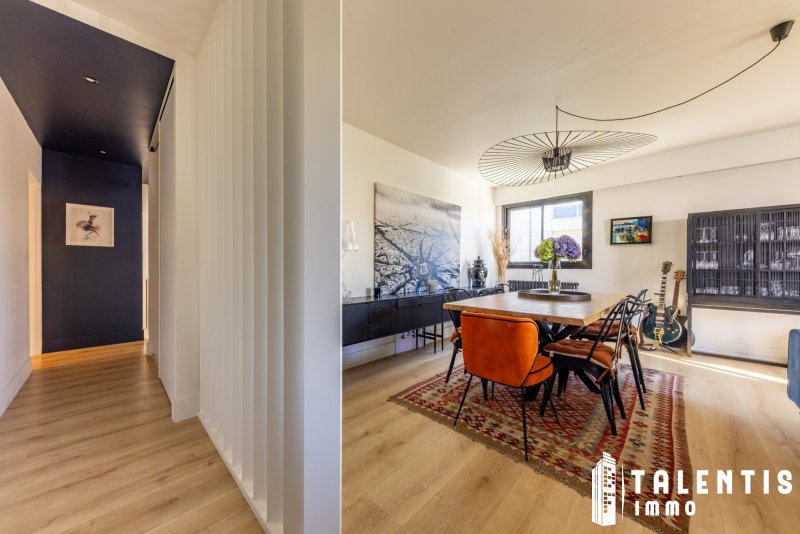 NANTES, SAINT-DONATIEN APPARTEMENT 5P (115m² 3ch) Vue Erdre Parking et terrasse Prestations haut de gamme Idéalement situé dans le quartier recherché de Saint-Donatien, face à l'Erdre, cet appartement d'exception prend place au 2? étage avec ascenseur d'une résidence semi-récente de très bon standing, au coeur d'un environnement calme et verdoyant. Entièrement rénové avec goût, ce bien traversant bénéficie d'une double exposition, offrant une luminosité remarquable et une agréable vue dégagée sur l'Erdre et la verdure. L'appartement se compose de pièces bien agencées aux volumes généreux : Une entrée, Une vaste pièce de vie d'environ 40 m², baignée de lumière, ouvrant sur une terrasse de 14 m² avec vue panoramique sur l'Erdre, Une cuisine indépendante, aménagée et équipée (lave-vaisselle, four, réfrigérateur-congélateur, hotte, micro-ondes, plaques inductions), donne l'accès à un balcon, Un espace rangements et buanderie, Un dégagement avec placard, Trois chambres spacieuses (11.80m², 11.40m² et 11.70m²), Une salle de bains confortable avec baignoire et salle d'eau, WC indépendant. En annexe : Garage fermé, Place de parking couverte, Une cave en sous-sol. À savoir : Chauffage et eau chaude : Individuels au gaz, Menuiseries : Aluminium double vitrage, Charges annuelles : 2 304 (incluant eau froide et entretien de l'immeuble), Taxe foncière : 2 646 , Accord de la copropriété pour l'installation d'une borne de recharge électrique. Les atouts : Vue unique sur l'Erdre, Terrasse exposée Sud-Ouest, Luminosité et calme absolu, Agencement optimal et volumes généreux, Prestations soignées et rénovation de qualité, Stationnement complet (garage + parking). Transports : Bus : C6 (Arret : Lallié), C1 (Desaix), Tramway : L2 (Arrêt : Motte Rouge50 otages). Un appartement unique sur le marché réunissant : emplacement, prestations et qualité de vie ! Honoraires inclus de 4.5% TTC à la charge de l'acquéreur. Prix hors honoraires 630 000 . Dans une copropriété de 195 lots. Aucune procédure n'est en cours. Classe énergie C, Classe climat C Montant moyen estimé des dépenses annuelles d'énergie pour un usage standard, établi à partir des prix de l'énergie de l'année 2021 : entre 1208.00 et 1636.00 . Les informations sur les risques auxquels ce bien est exposé sont disponibles sur le site Géorisques : georisques.gouv.fr. . Talentis, l'immobilier sur mesure.