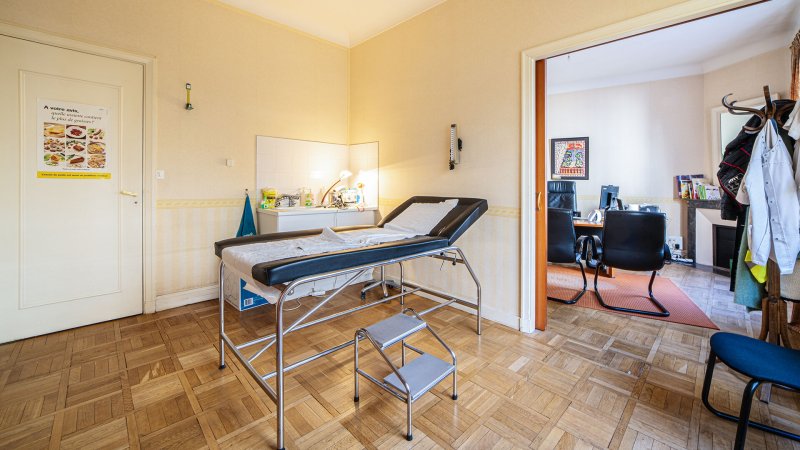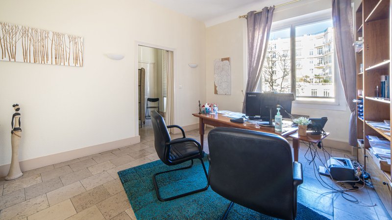 Entrée, 3 double bureaux, 1 bureau simple, cuisine, local archive et WC.