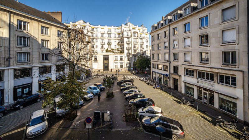 Nantes - Place Lamirault : Emplacement ultra privilégié du centre-ville, à deux de la place Graslin et de toutes les commodités de l'hypercentre, magnifique appartement plein de charme au sein d'une petite copropriété de caractère avec ascenseur.
