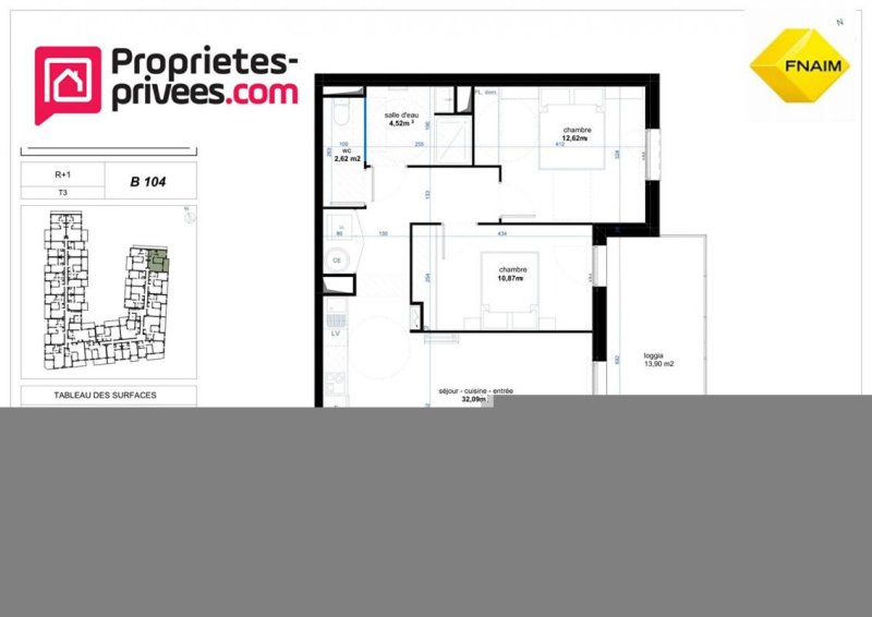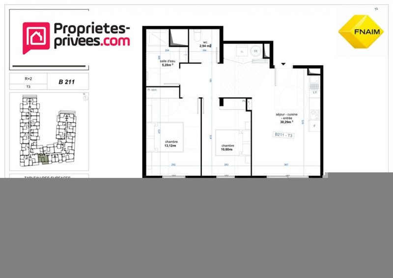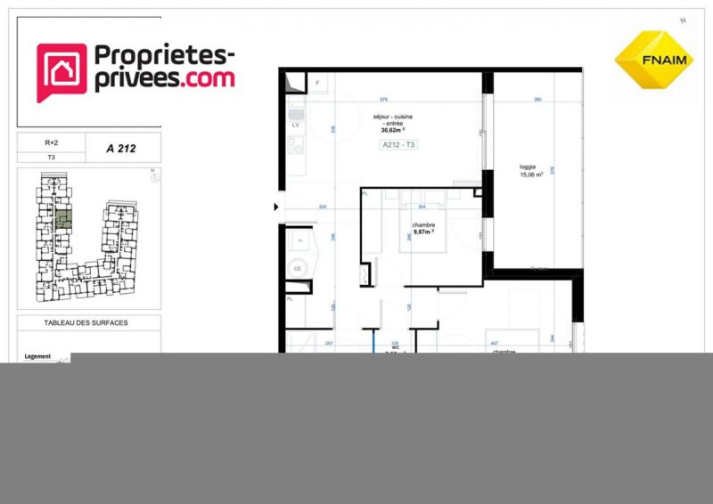 Surface de l'appartement 62,96 Bm2