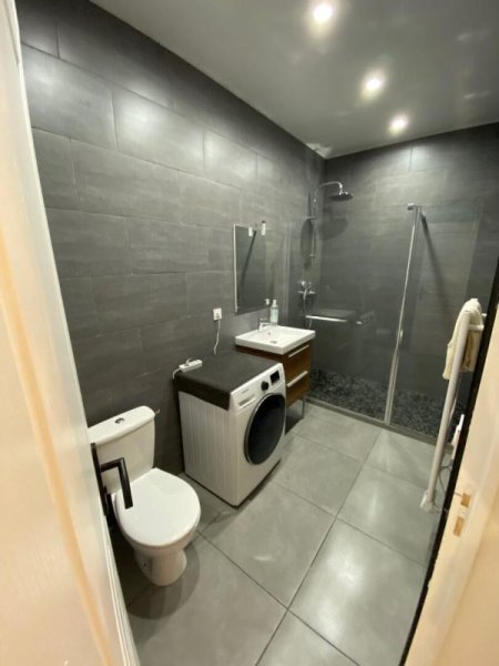 Grande salle d'eau élégante, équipée d'une douche à l'italienne, d'un lave-linge/sèche-linge et de WC