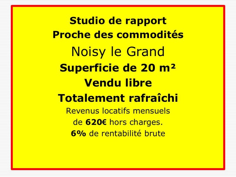 Noisy le Grand 93160 - En exclusivité - Proche gare RER A - Studio de 20 m² libre d'occupation et rafraîchi complètement : .