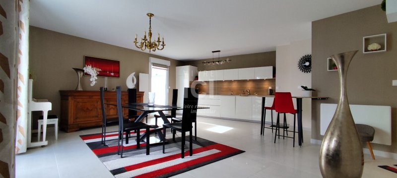 Dès l'entrée, les volumes et la luminosité séduisent immédiatement. La pièce de vie, exceptionnelle pour ce type de bien, développe près de 50 m² et offre un espace de réception généreux, ouvert sur une superbe cuisine aménagée et équipée "Mobalpa", élégante et parfaitement intégrée.