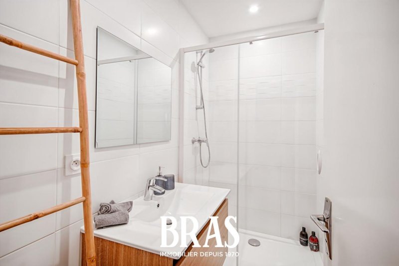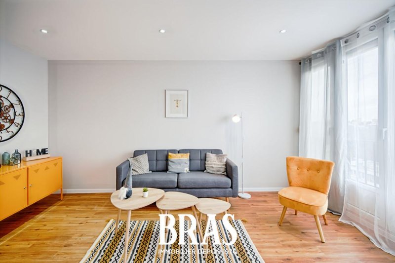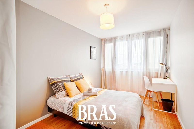 L'appartement est traversant et se compose d'un salon, d'une cuisine entièrement aménagée et équipée avec cellier, de 3 chambres avec rangements, d'une salle d'eau et d'un wc.