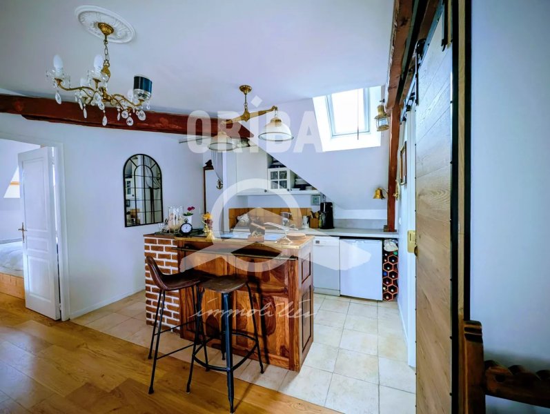 Appartement T4 en duplex rénové, dans ancien immeuble en pierre comprenant au 2ème et dernier étage pièce de vie avec cuisine aménagée équipée, chambre, salle de bains avec douche et baignoire, wc et au 1er étage dégagement, 2 chambres, salle d'eau, wc. +33 6 63 90 07 06 - +33 2 40 60 24 52