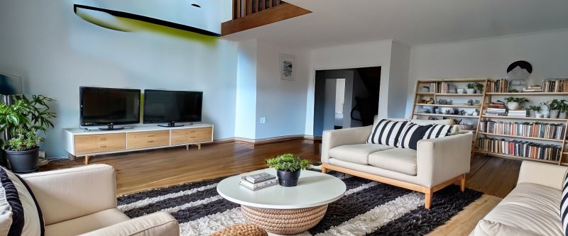 Les images de mise en scène digitale vous permettent de projeter l'aménagement des espaces et notamment de la pièce de vie en salon/salle à manger.